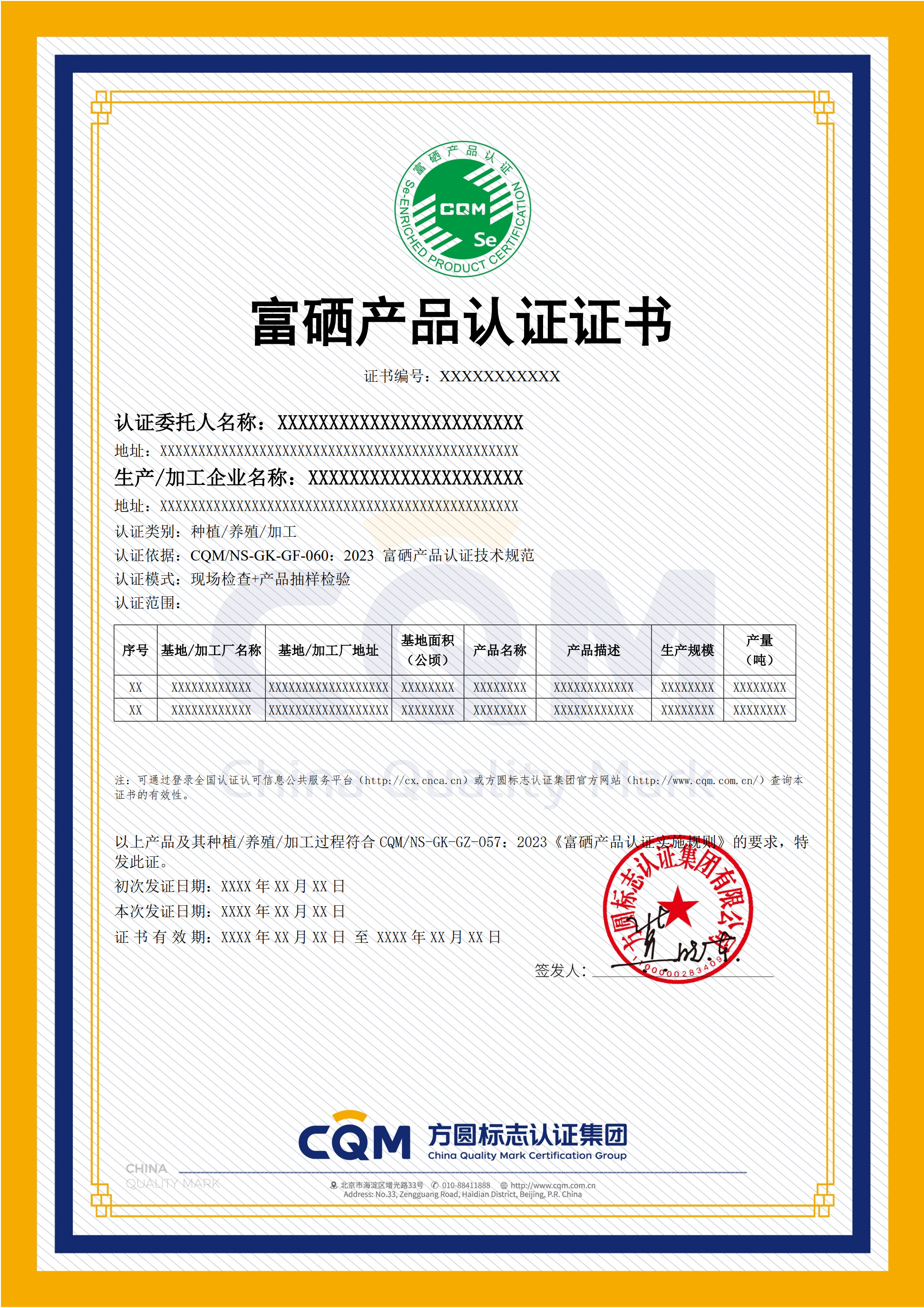 CQM/NS-GK-GZ-057:2023 富硒產品認證實施規則