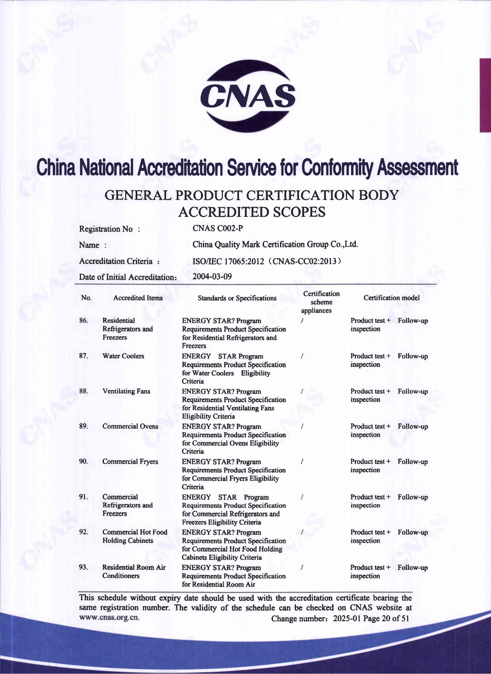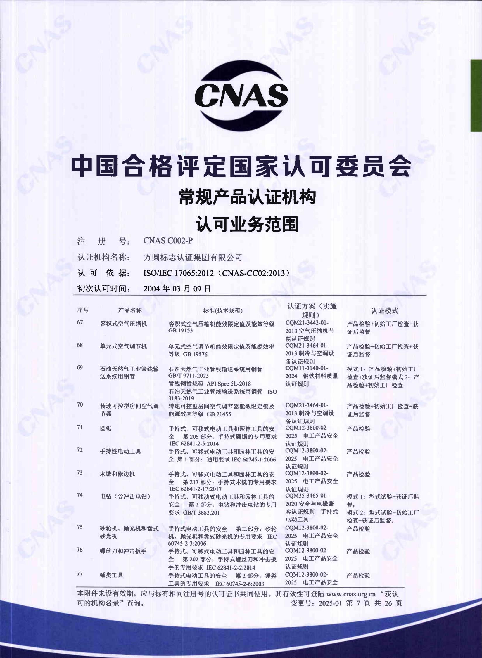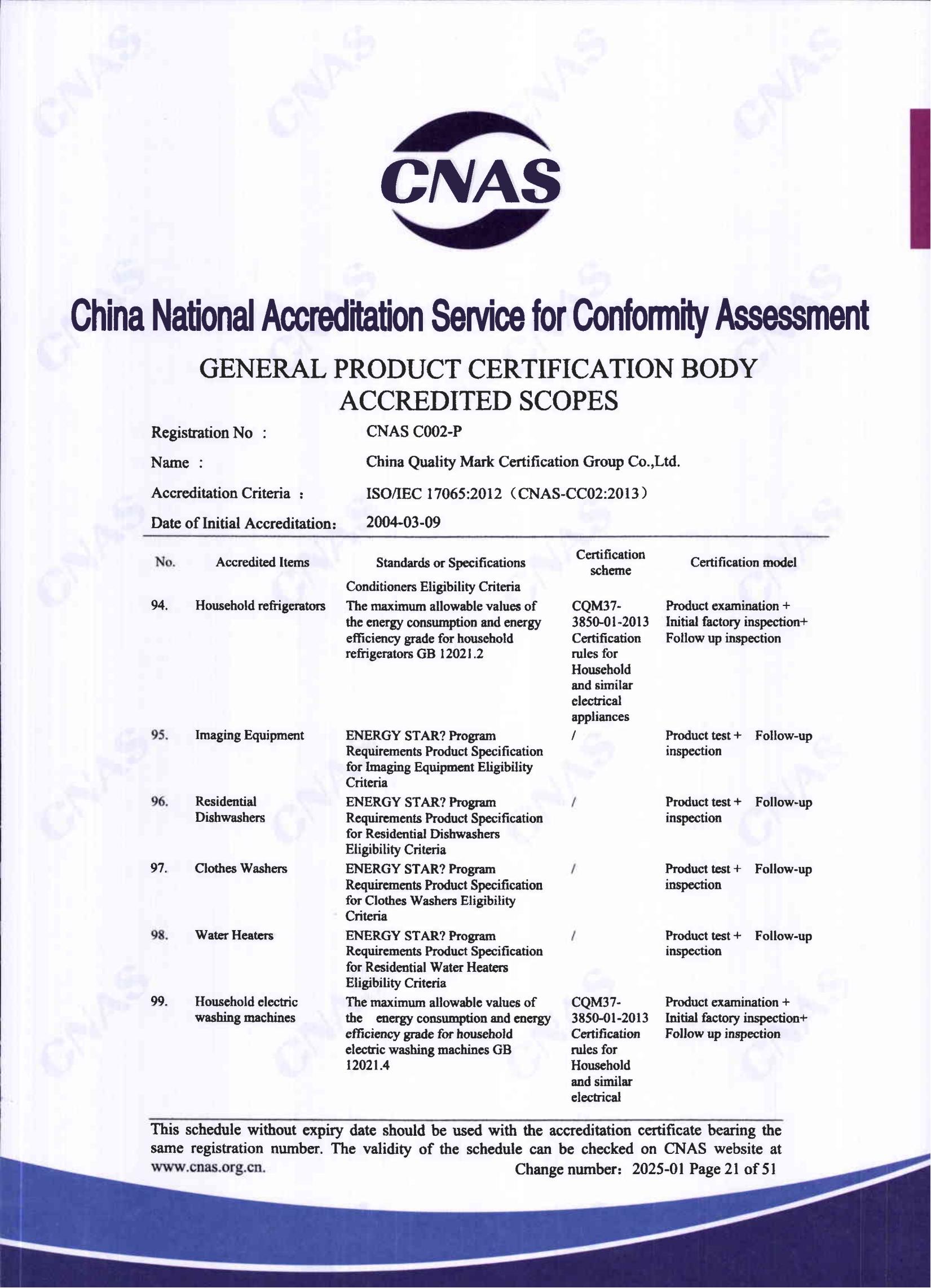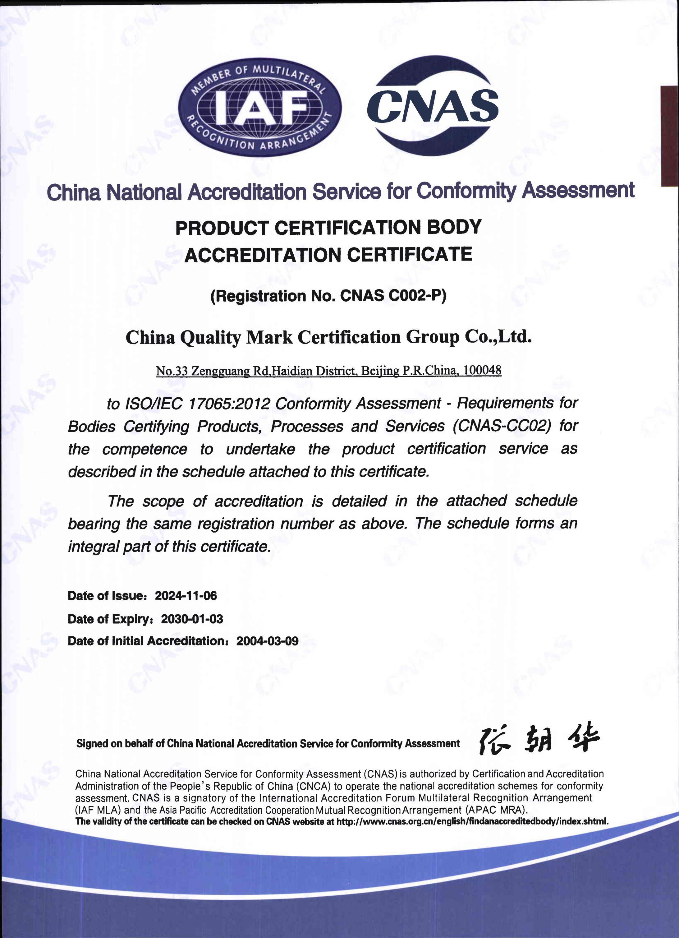 自愿性產品認證認可證書