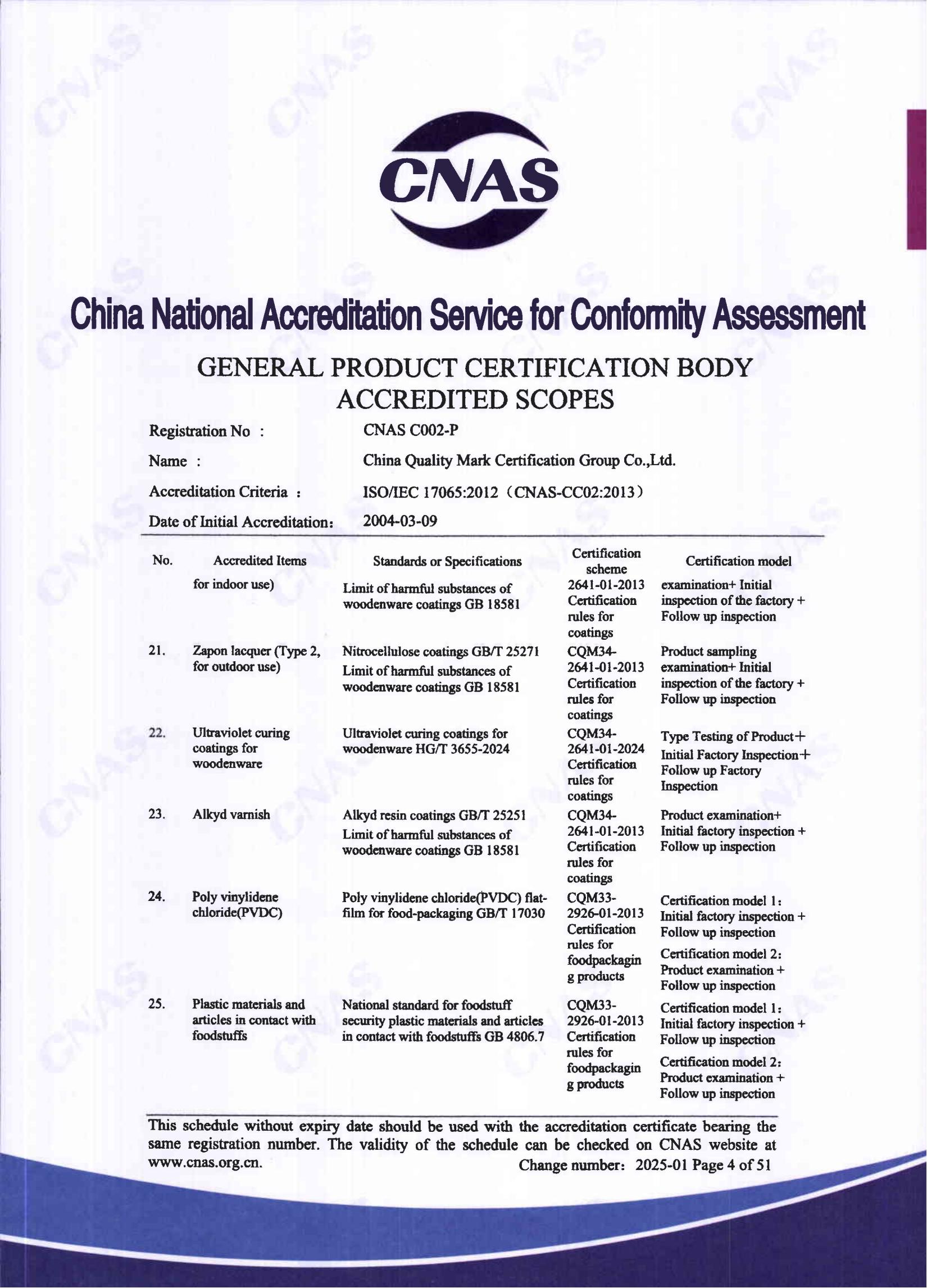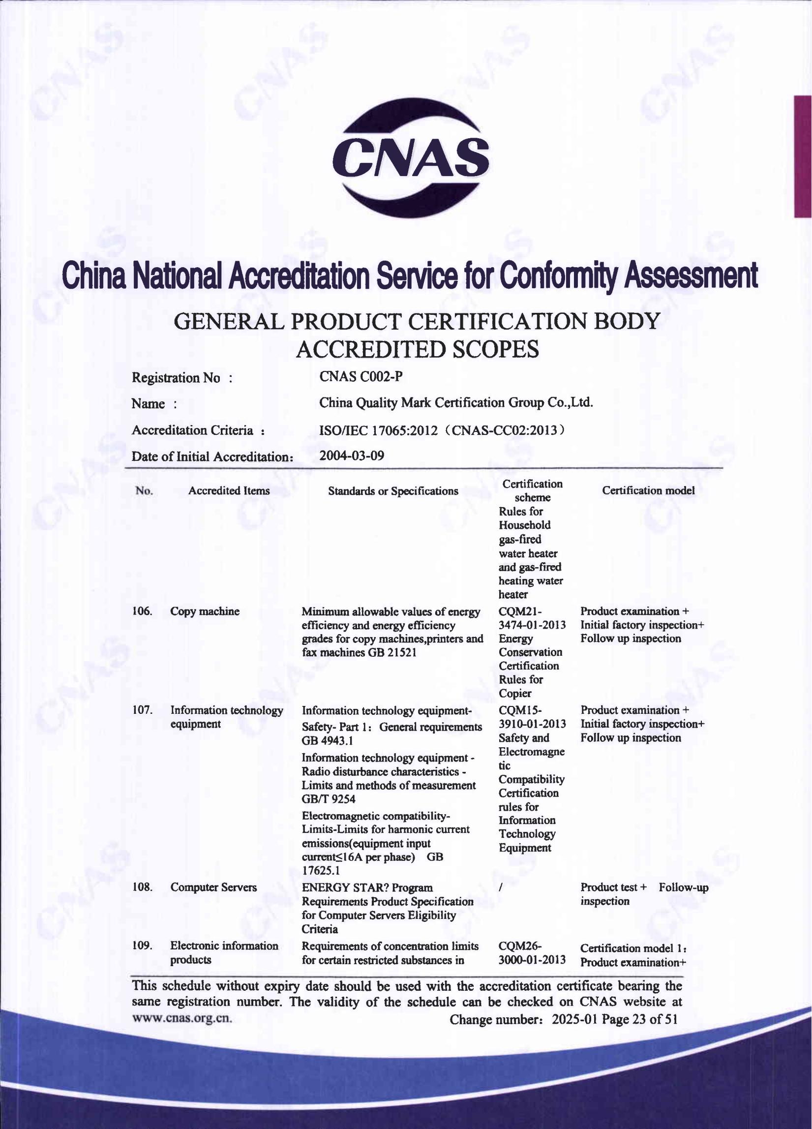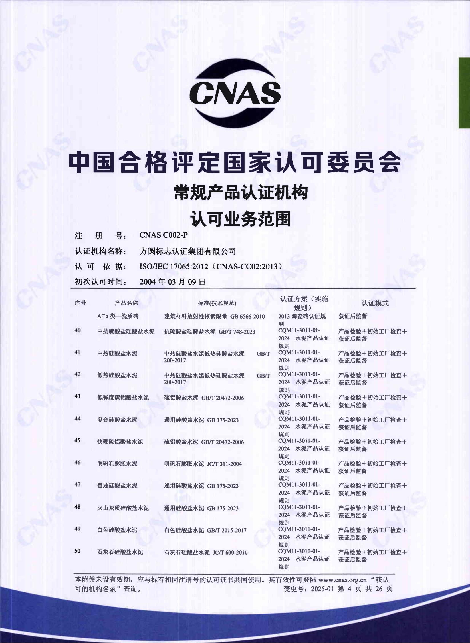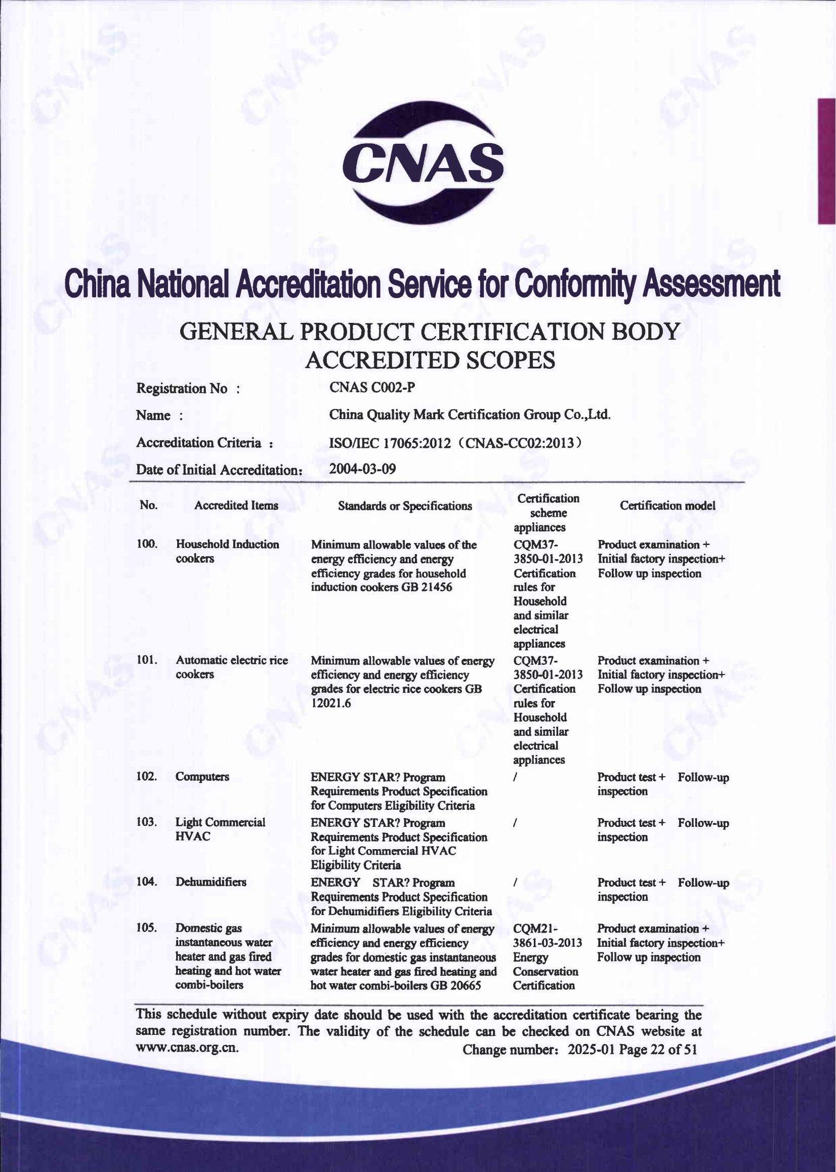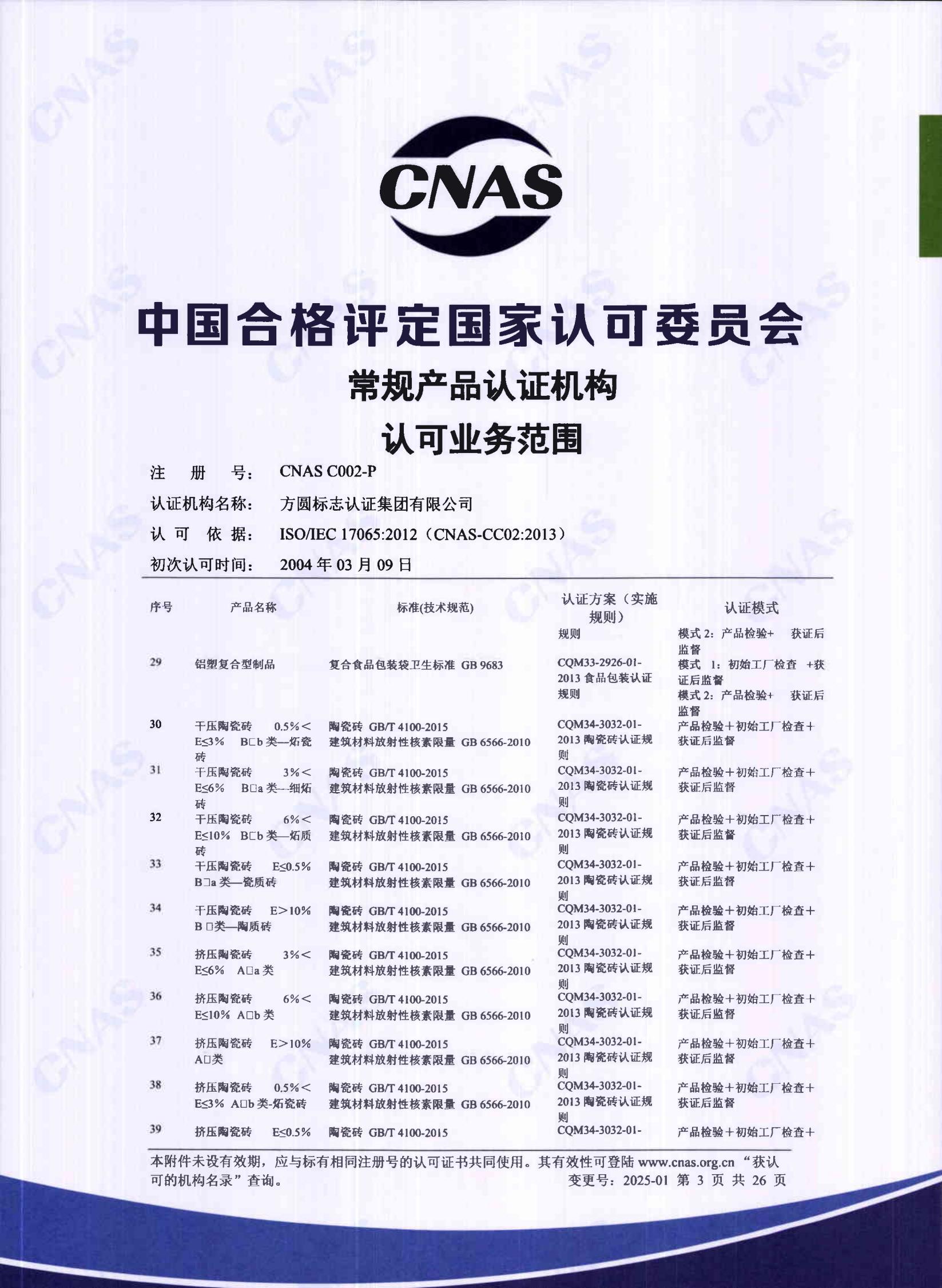 自愿性產品認證認可證書