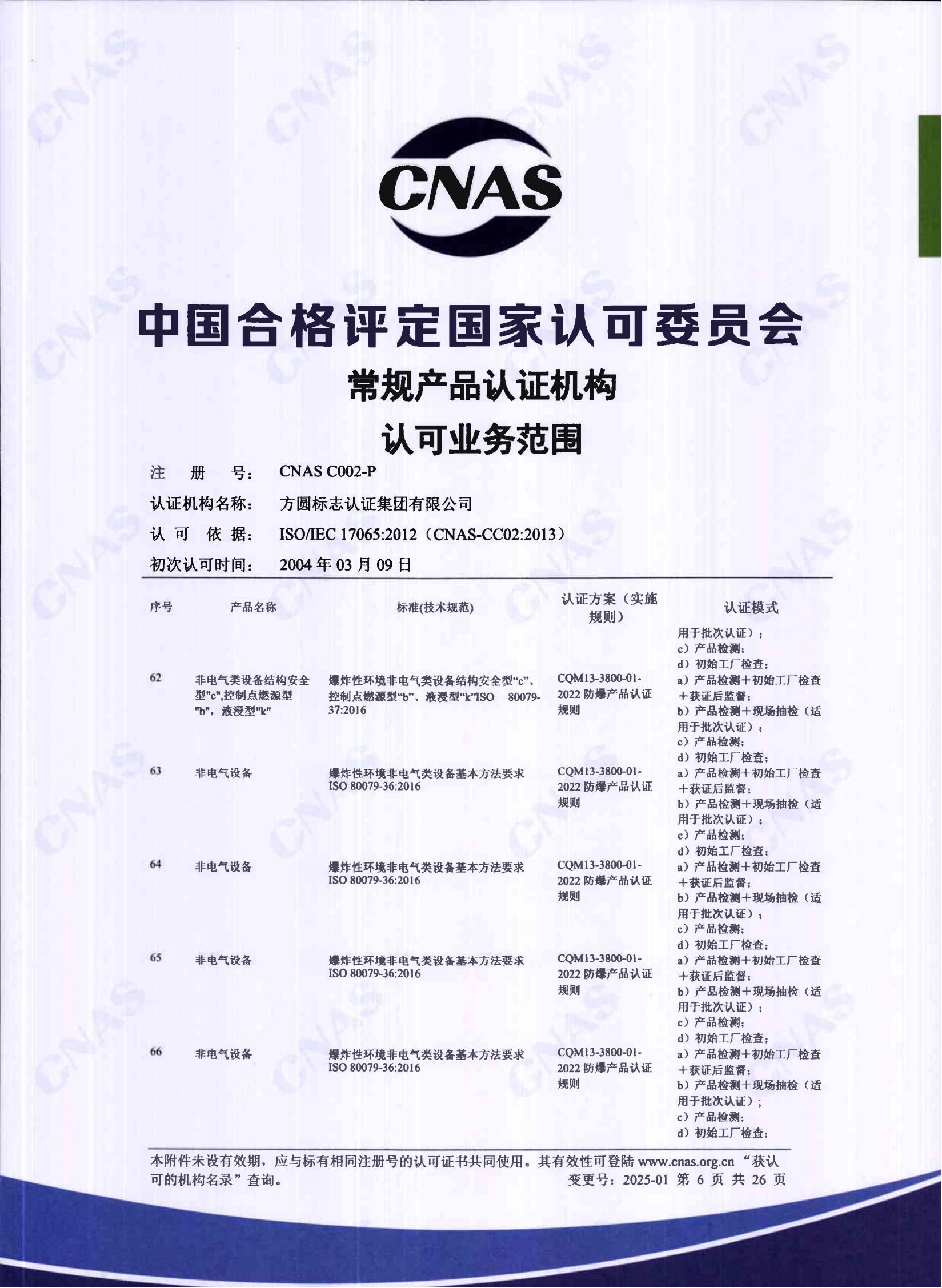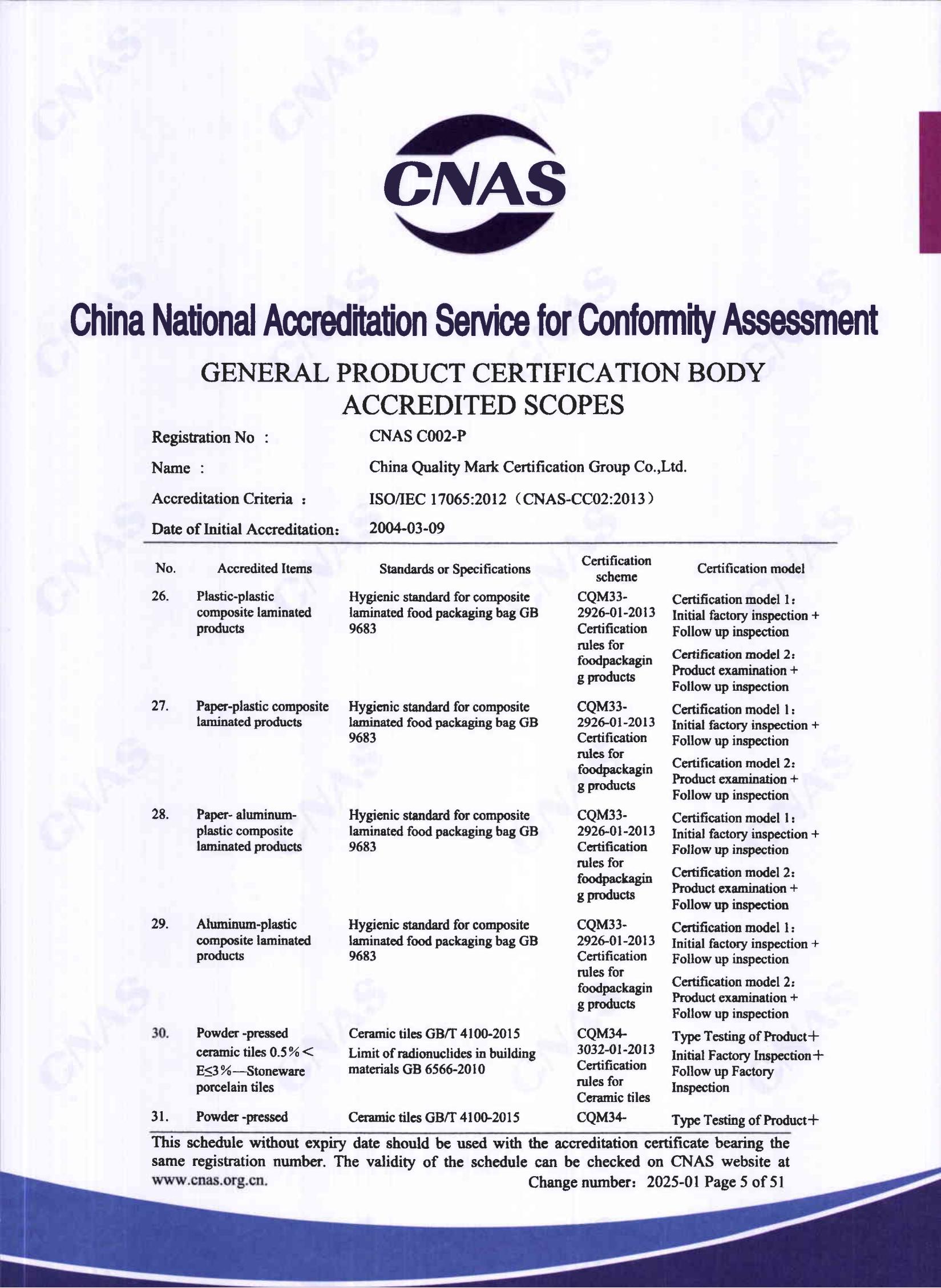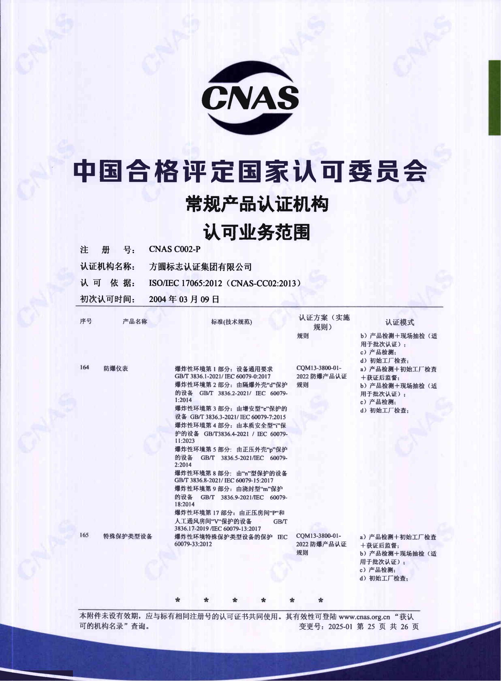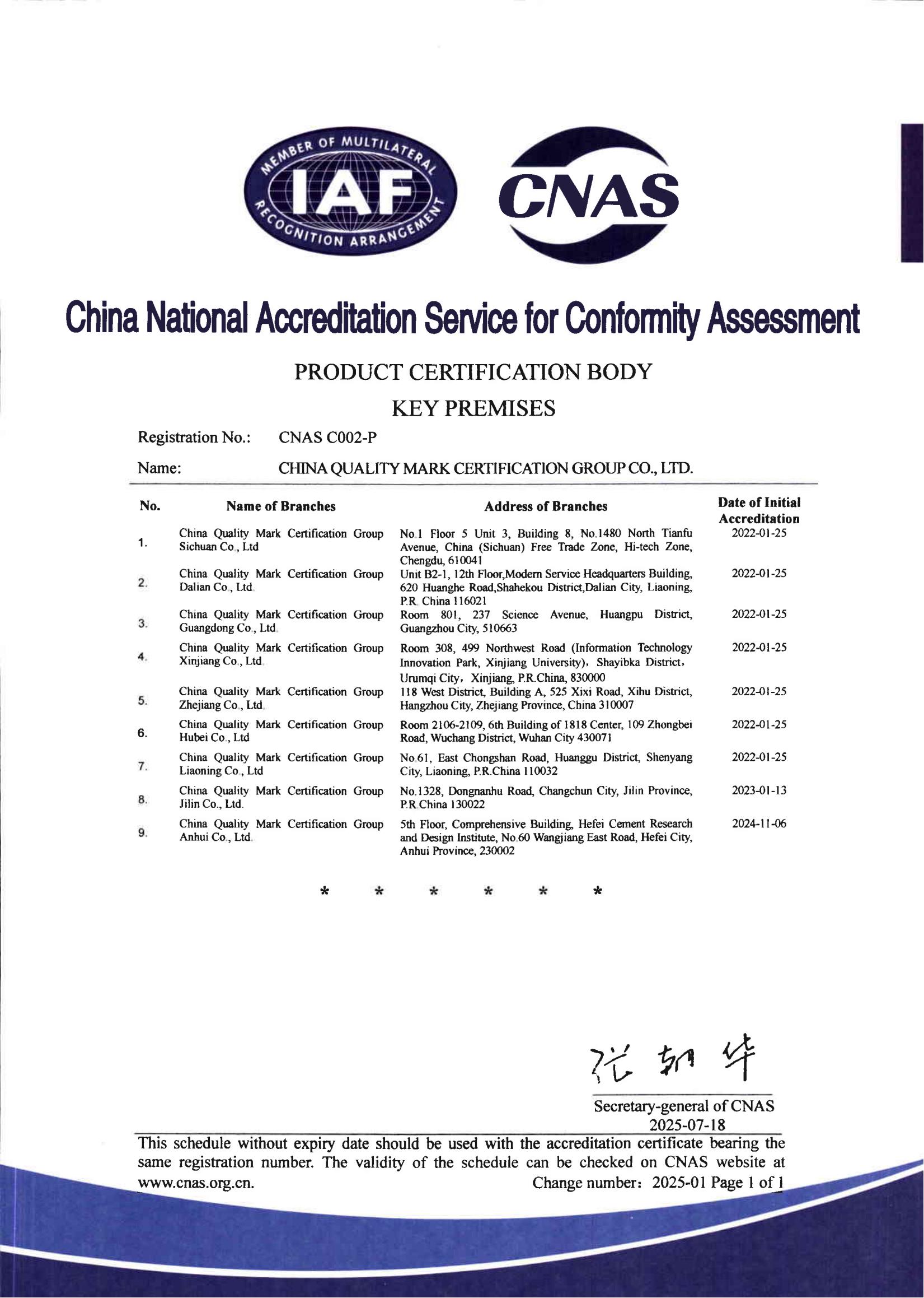 自愿性產品認證認可證書