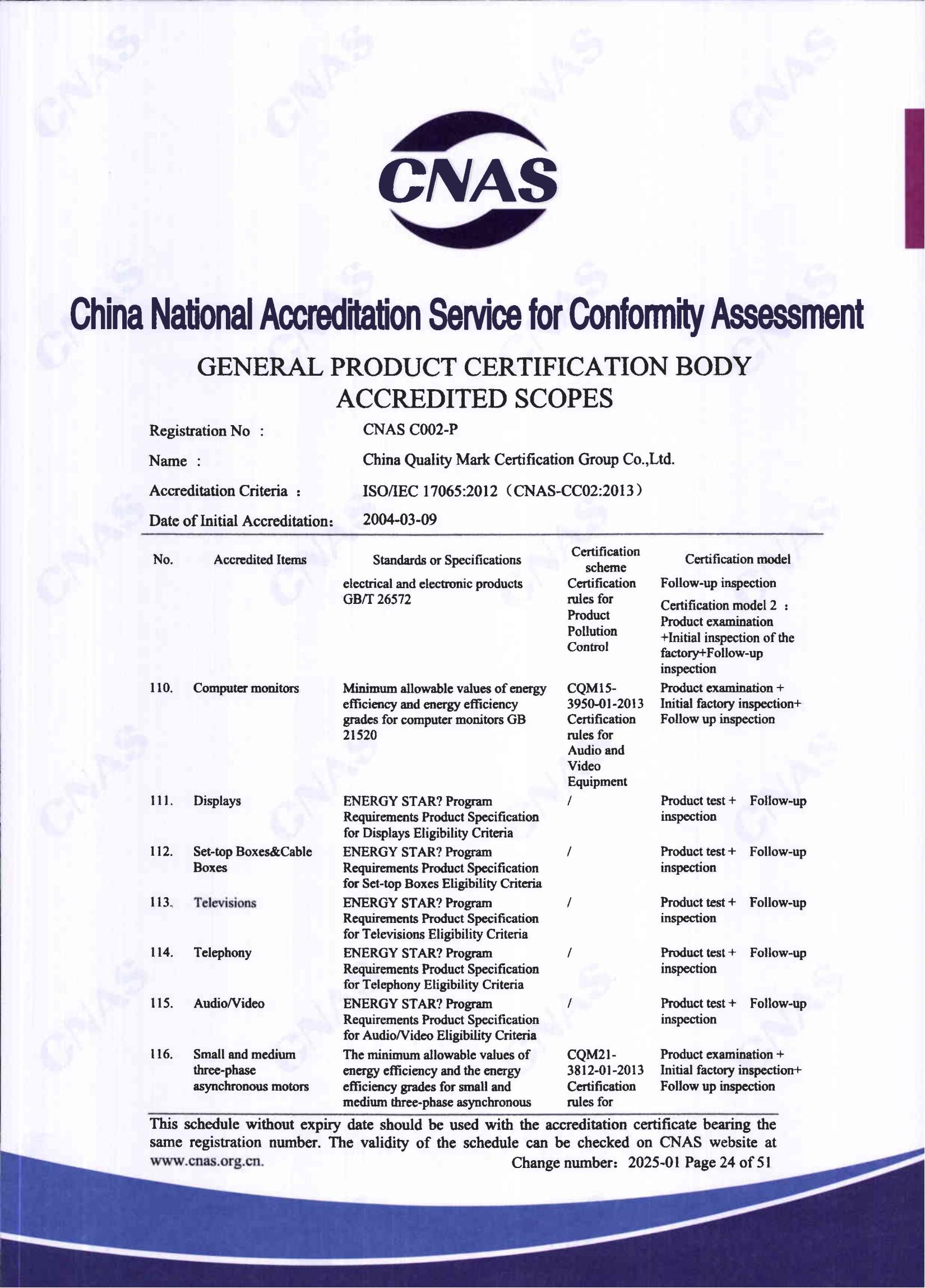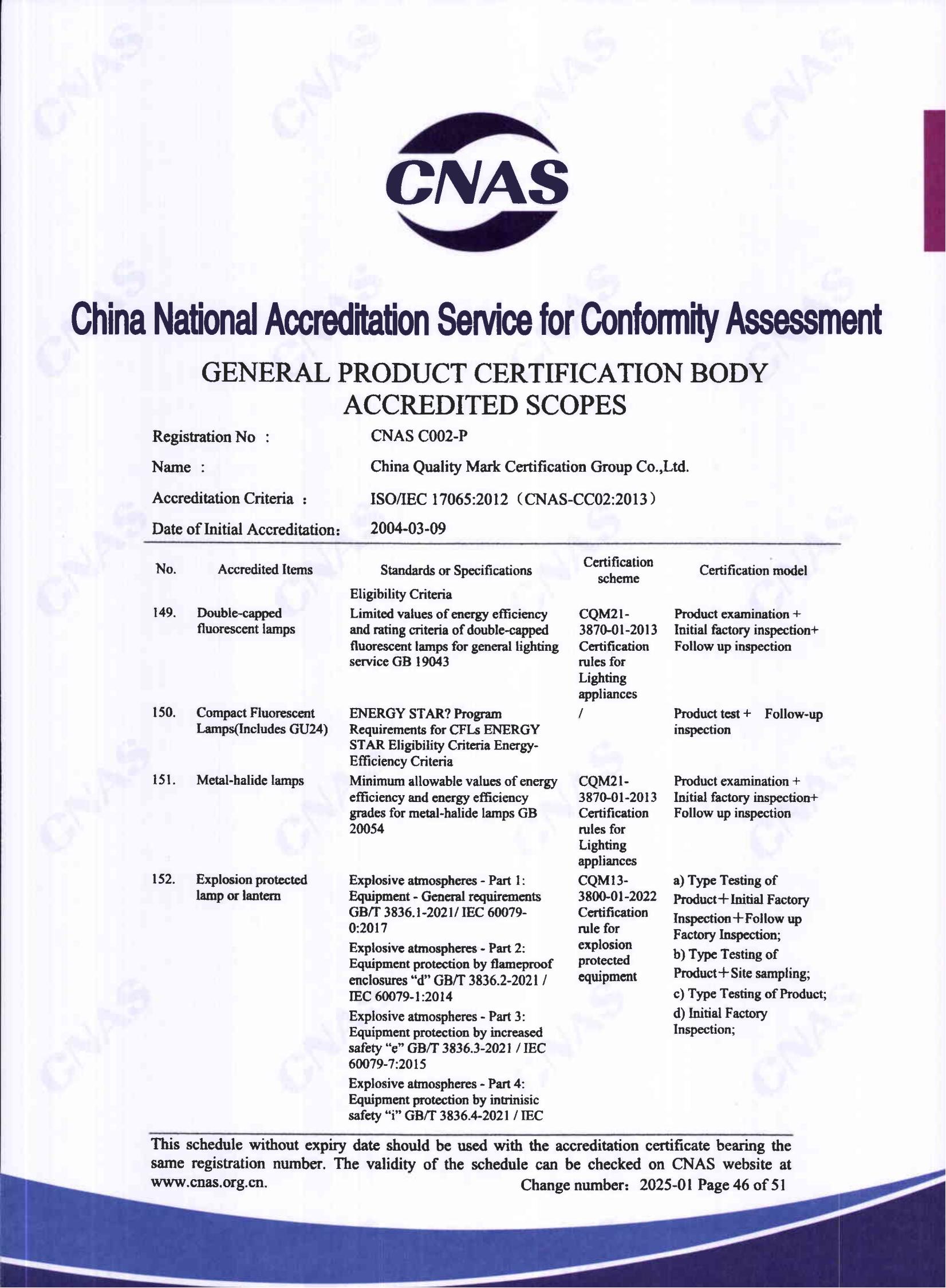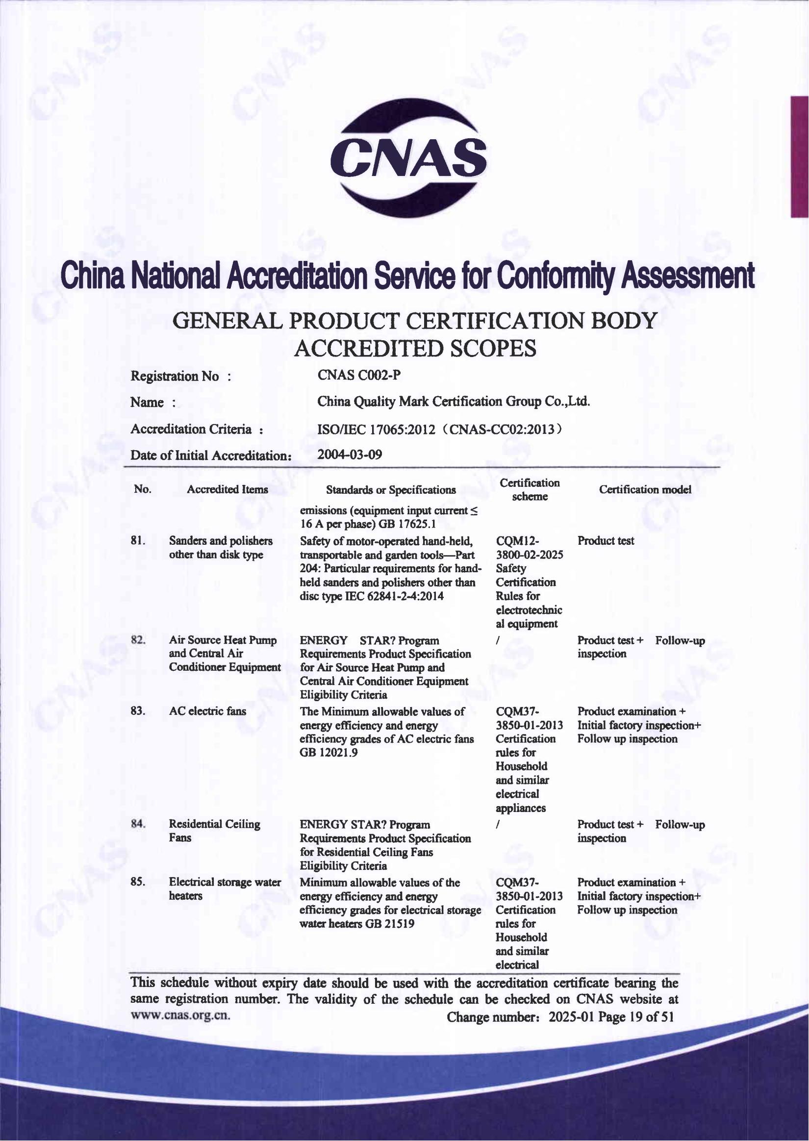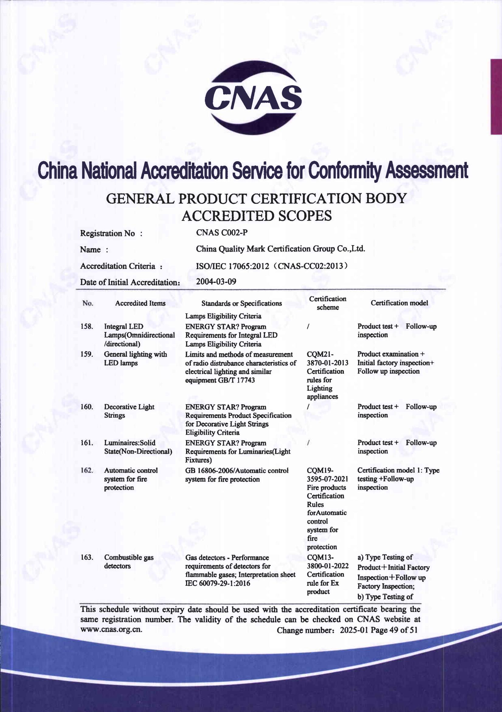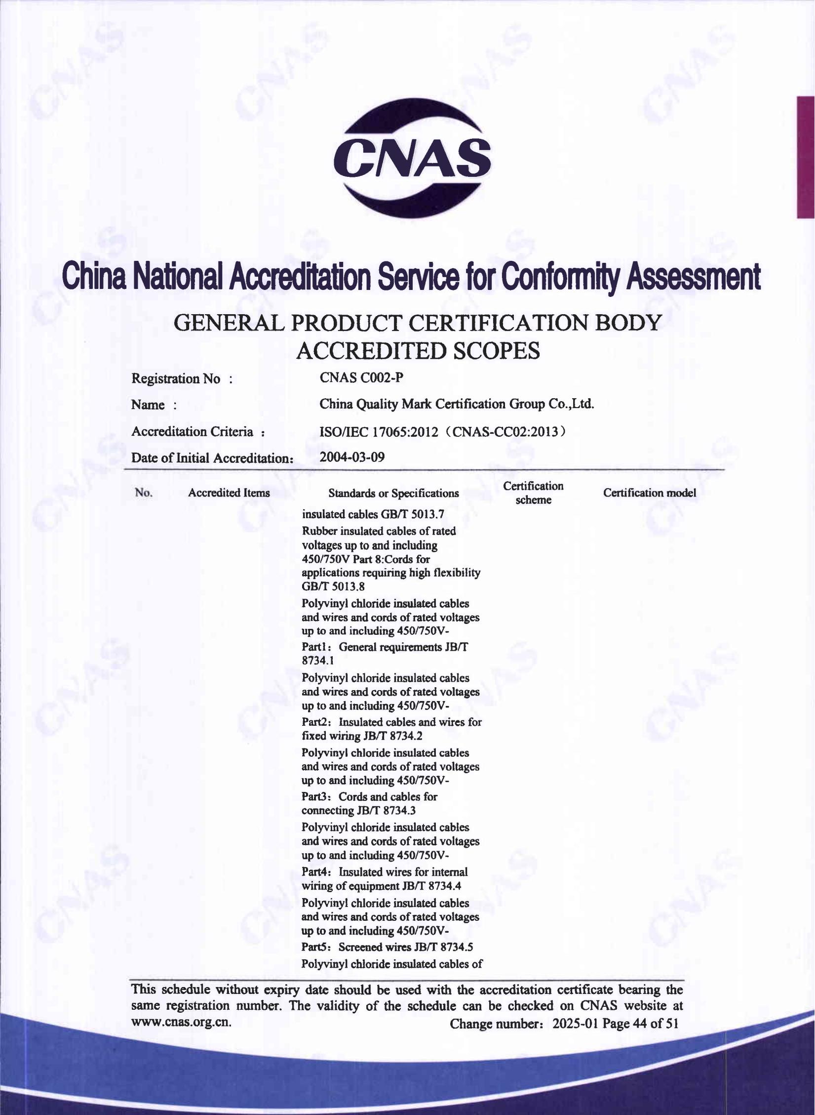 自愿性產品認證認可證書