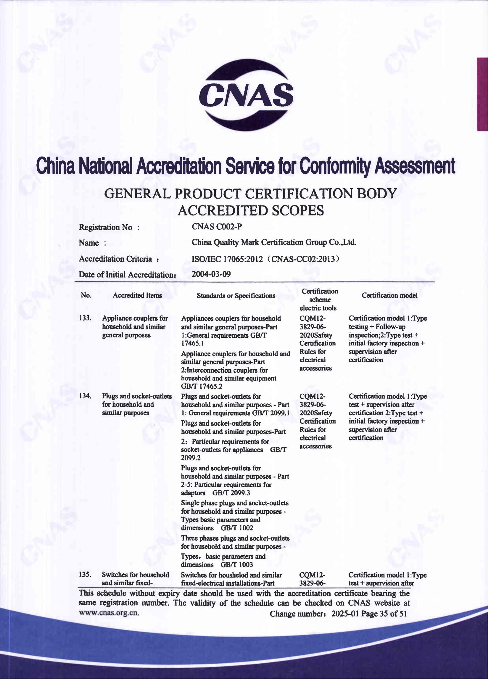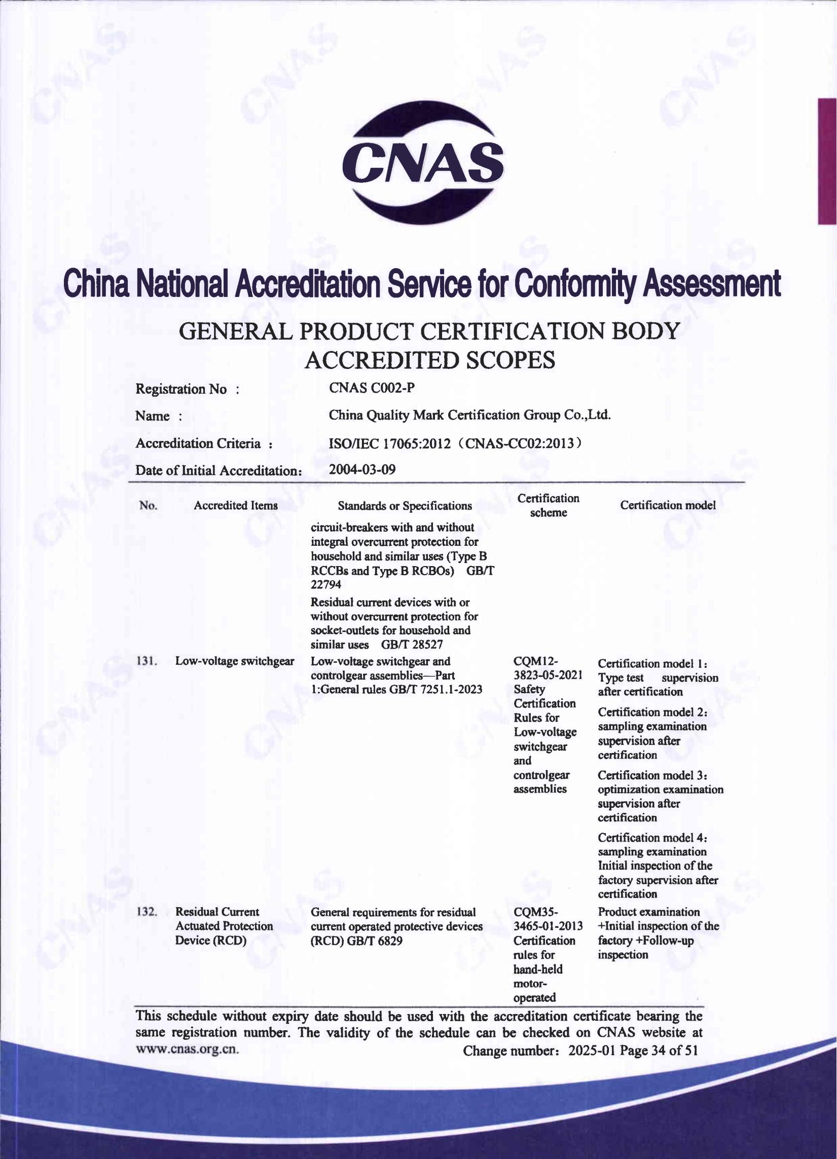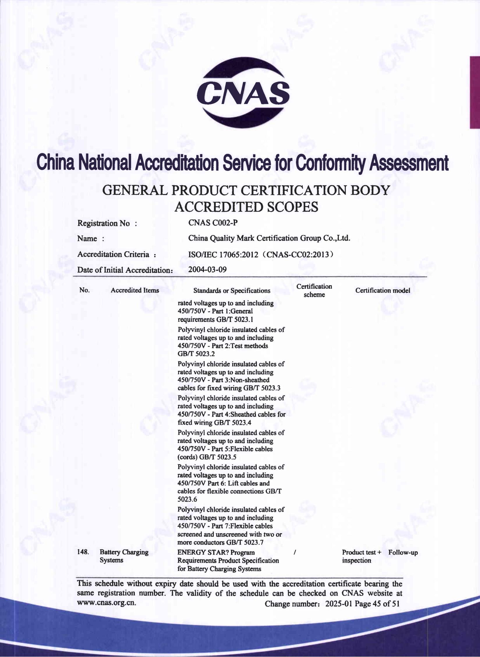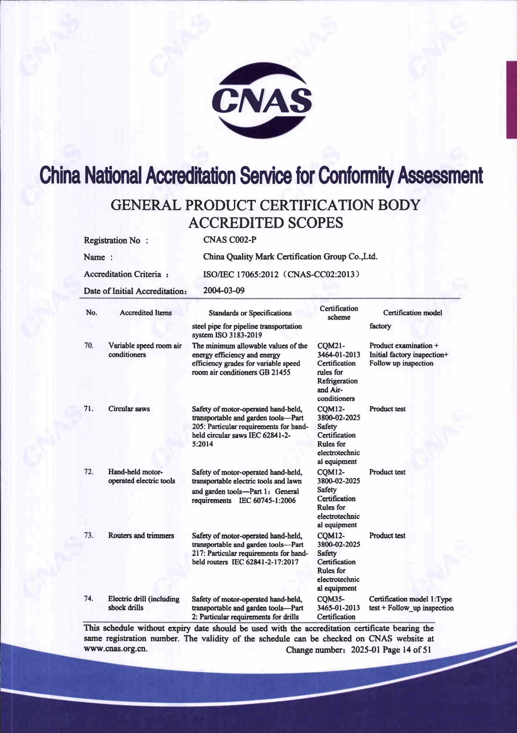 自愿性產品認證認可證書