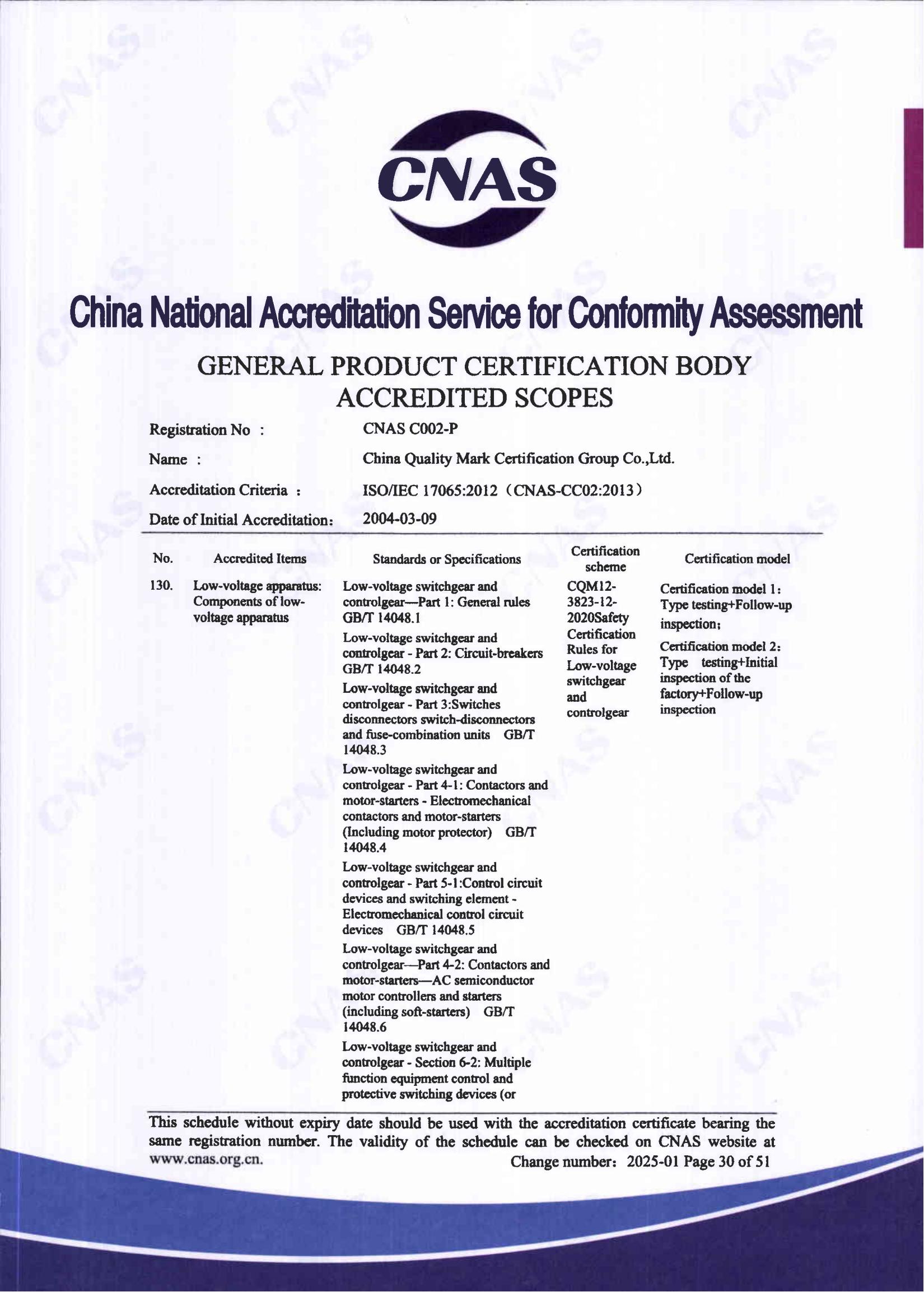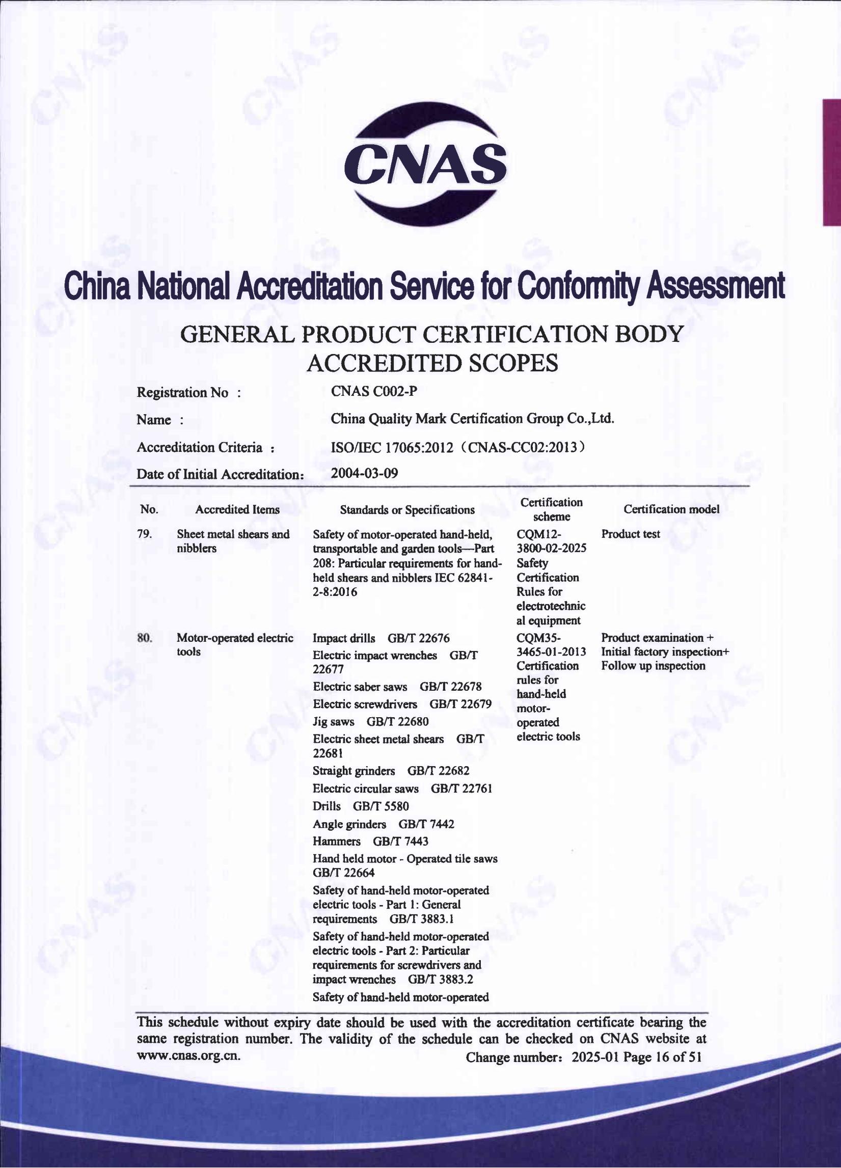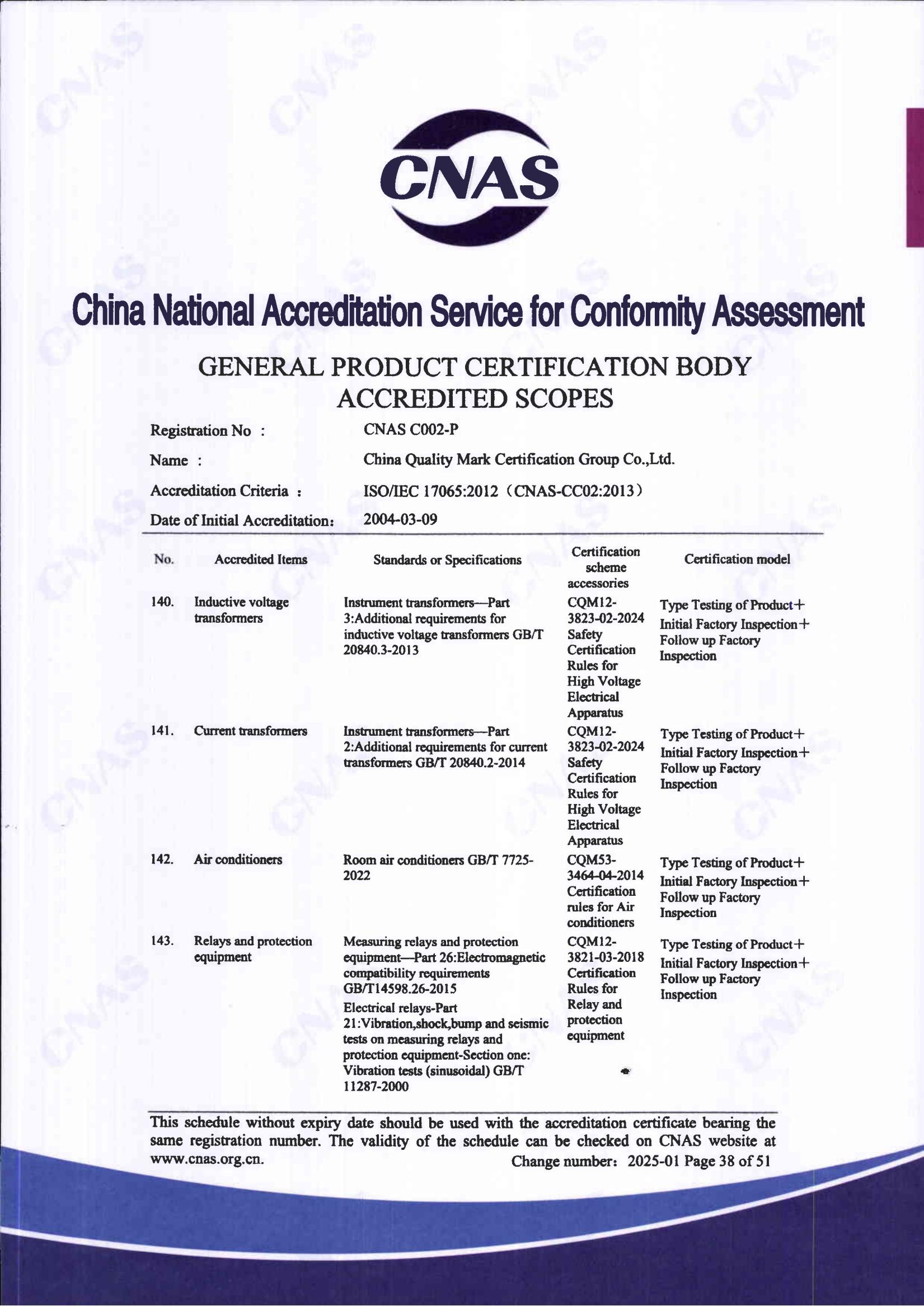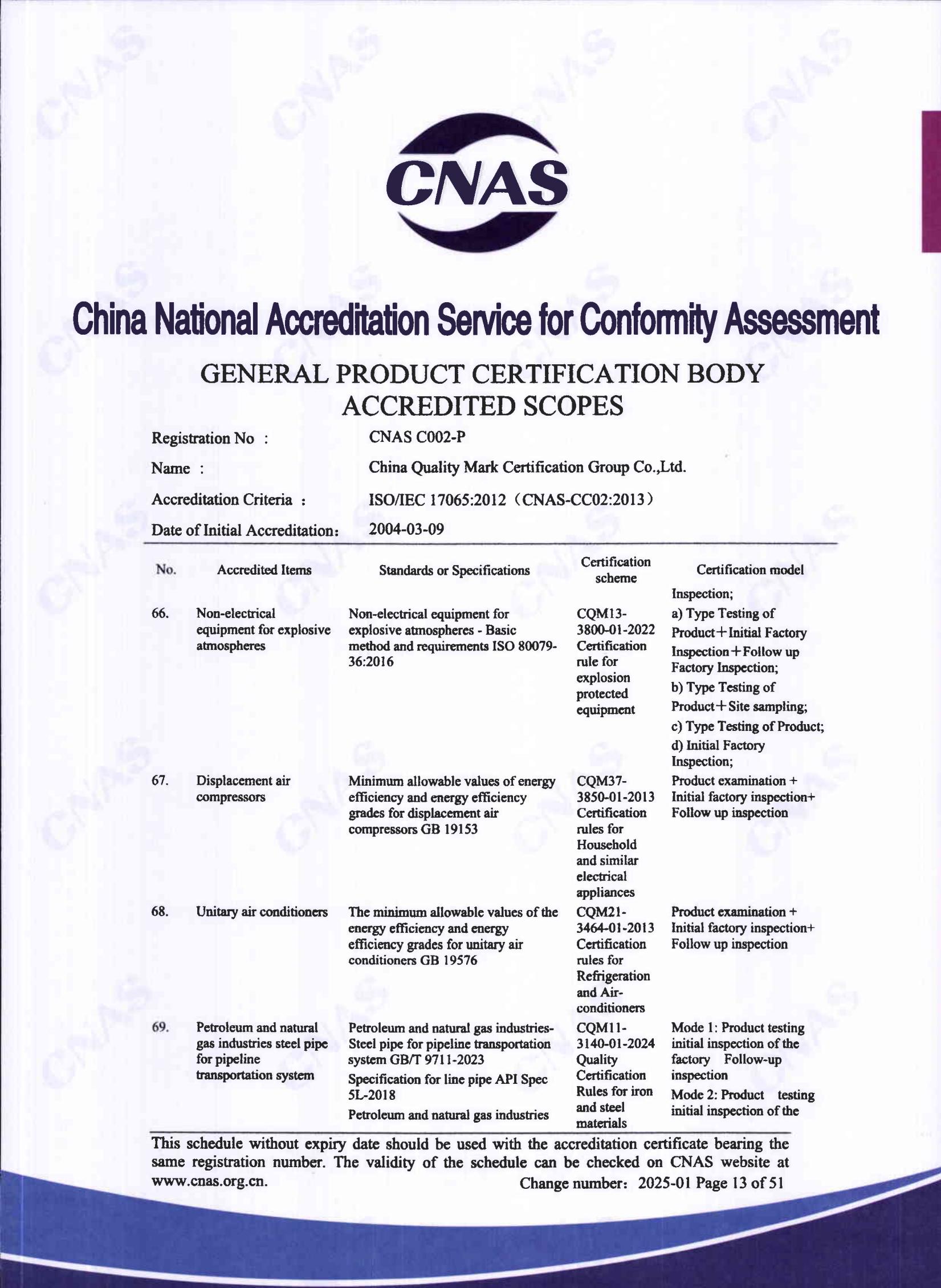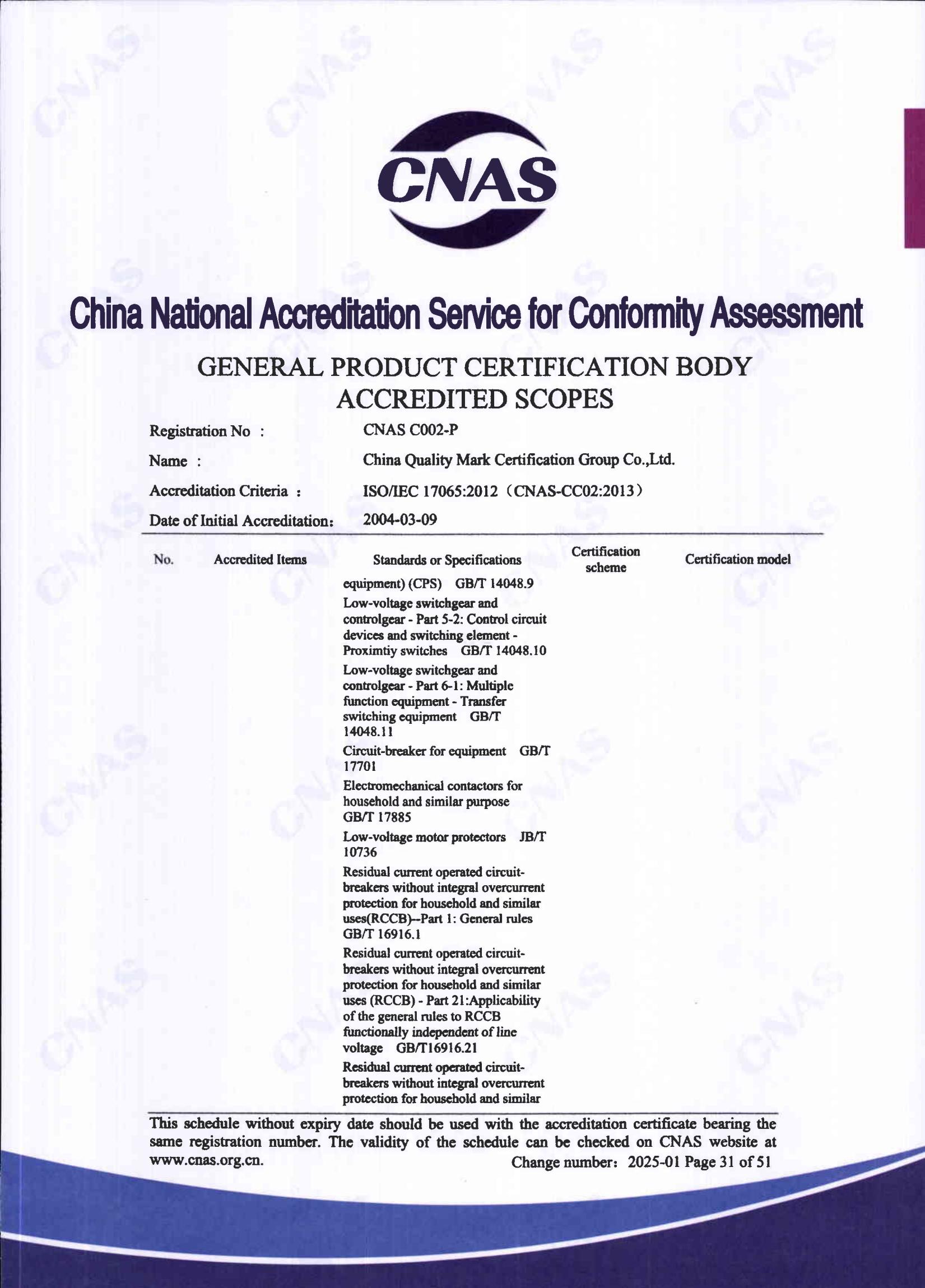 自愿性產品認證認可證書