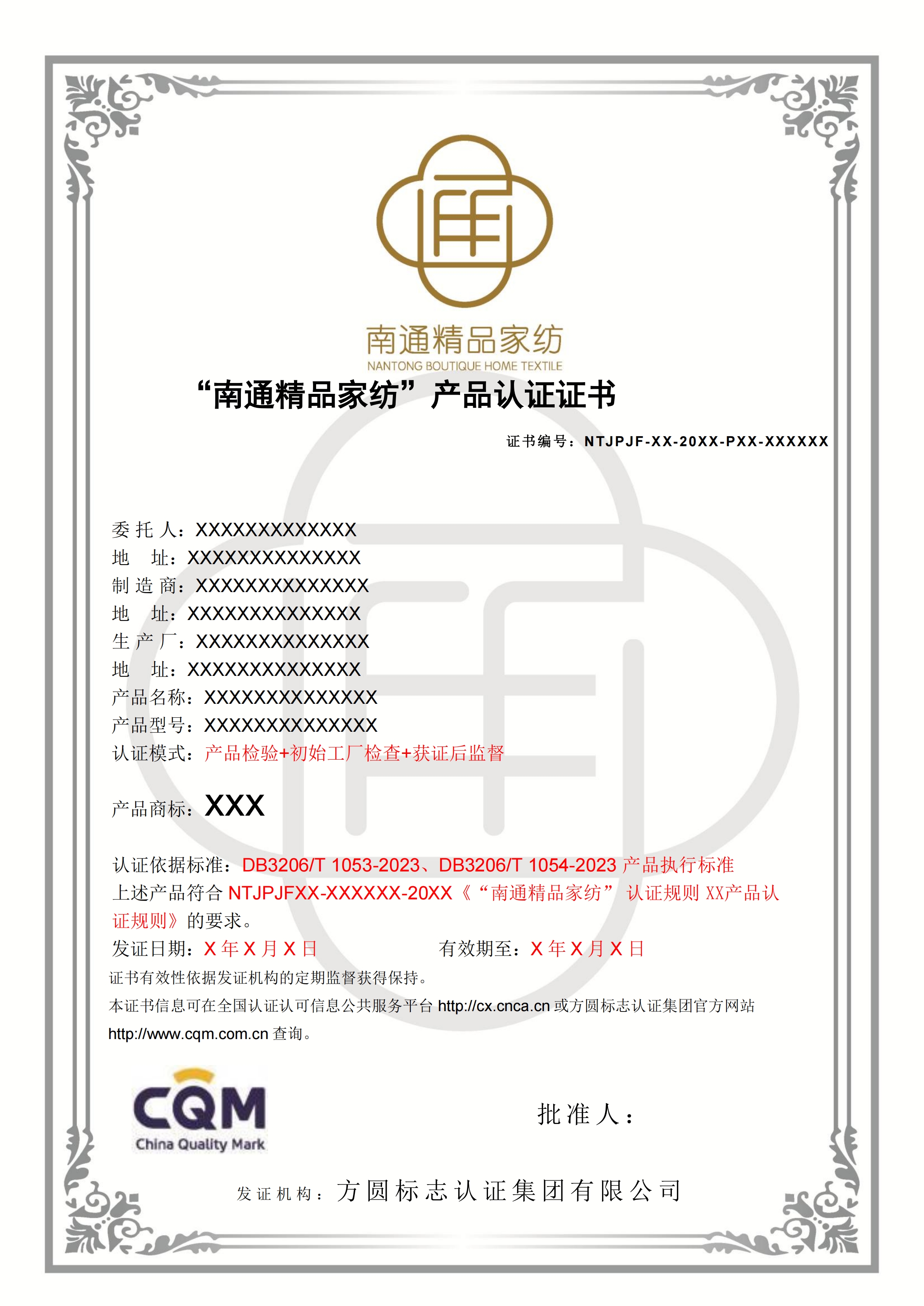 2.“南通精品”證書樣式: