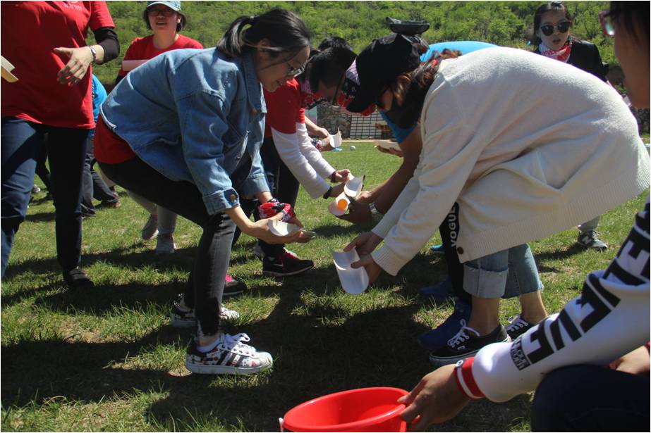 抵達黃花城水長城培訓場所后,大家在培訓教練的帶領下被分成九個小組,經(jīng)過各小組的一番頭腦風暴,九個個性鮮明的團隊名稱、響亮的團隊口號、嘹亮的隊歌以及富有特色的隊旗逐一精彩亮相,“小西湖場地趣味定向尋寶—湖底的秘密”拓展培訓活動的序幕也正式拉開。各隊手持“通關寶典”,比拼體力腦力,共同配合,拯救了“被詛咒的水怪”,攻克了“行走的板栗王”,挑戰(zhàn)了“語言魔王”……活動過程中所有團隊成員積極參與,迎難而上,隊員之間相互支持,相互鼓勵,最終,所有團隊均圓滿通關,完成了最終任務——方圓夢想拼圖。