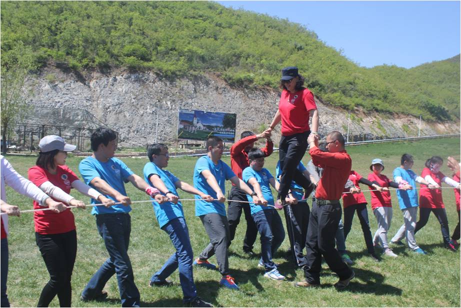 第二天,九個小組的成員們分別參與了“盜夢空間”、“挑戰(zhàn)NO.1”等經(jīng)典素質拓展培訓項目,每個項目結束后大家共同分享了成功的經(jīng)驗和挑戰(zhàn)的樂趣,充分地體會到了團隊信任、有效溝通、換位思考和團隊協(xié)作等和工作息息相關的管理意識。最后的百人挑戰(zhàn)“團隊能量”項目更是激發(fā)了大家的斗志,在同心協(xié)力完成了不可能完成的挑戰(zhàn)后,每個人的臉上都洋溢著自信的笑容,互相支撐、相互信賴的方圓人是最棒的!