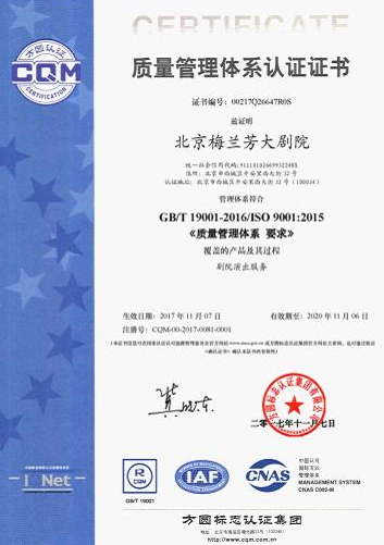2017年11月, 經過歷時半年的精心準備,方圓集團對梅蘭芳大劇院實施了GB/T19001-2016新版質量管理體系現場審核,在評審過程中雙方進行了充分交流,取得了圓滿的結果。最終,梅蘭芳大劇院于本月7日順利通過了認證評審,方圓集團為其頒發了新版認證證書。