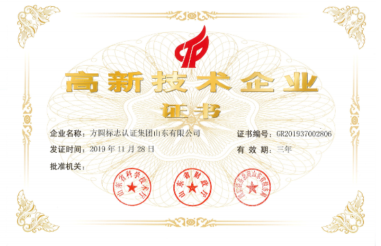 時間:2020年04月23日 方圓山東公司被認(rèn)定為2019年山東省第一批國家級高新技術(shù)企業(yè)。2020年4月17日,方圓山東公司取得了由山東省科技廳、山東省財政廳、國家稅務(wù)總局山東省稅務(wù)局聯(lián)合頒發(fā)的《高新技術(shù)企業(yè)證書》。