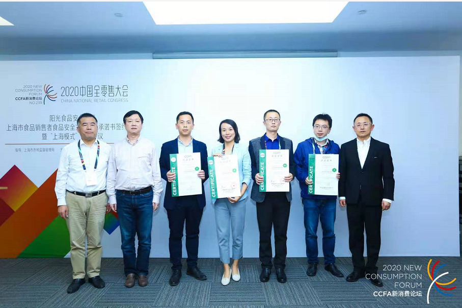 11月19日在上海“2020 中國全零售大會”上,參會領導為獲得CCFA-GS認證的企業頒發了證書。