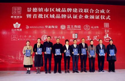 此外,本次儀式還為首批獲評景德鎮制區域品牌認證的陶瓷企業頒發證書,分別為:景德鎮陶瓷集團有限責任公司、江西省玉風瓷業有限公司、景德鎮誠德軒瓷業有限公司、景德鎮市望龍陶瓷有限公司、景德鎮皇窯陶瓷有限公司、景德鎮市玉柏瓷業有限公司、景德鎮富玉青花玲瓏陶瓷有限公司、景德鎮市博大精工藝術陶瓷有限公司、景德鎮市恩達陶瓷有限公司以及景德鎮市福萬利陶瓷有限公司。