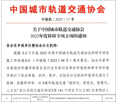 近日,中國(guó)城市軌道交通協(xié)會(huì)發(fā)布《2022年度科研專項(xiàng)立項(xiàng)的通知》(中城軌[2023]17號(hào)),CQM方圓聯(lián)合比亞迪設(shè)計(jì)提出的《軌道交通領(lǐng)域典型產(chǎn)品碳足跡評(píng)價(jià)關(guān)鍵技術(shù)研究》項(xiàng)目,成功獲得行業(yè)科研課題立項(xiàng)。