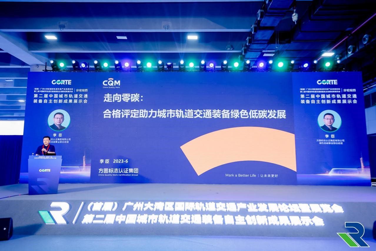 CQM方圓綠色低碳事業(yè)部總經(jīng)理李臣發(fā)表了《走向零碳:合格評(píng)定助力城軌裝備綠色低碳發(fā)展》主題演講,從企業(yè)碳達(dá)峰情景分析、節(jié)能降碳重點(diǎn)方向與措施途徑,以及如何利用生命周期評(píng)價(jià)、綠色設(shè)計(jì)、碳足跡認(rèn)證、碳中和管理體系建設(shè)、零碳工廠創(chuàng)建等合格評(píng)定技術(shù)手段助力軌道交通裝備產(chǎn)業(yè)綠色低碳發(fā)展進(jìn)行了介紹交流。